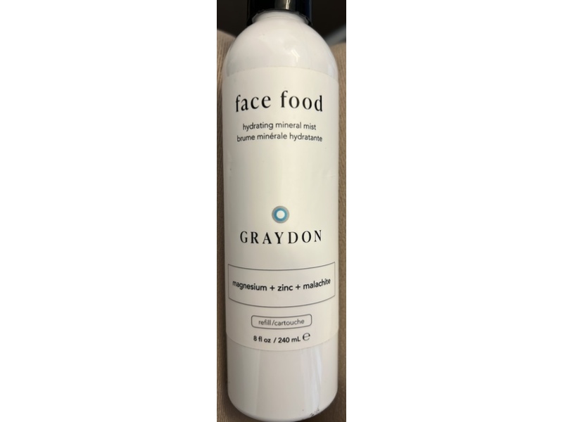 Graydon Skincare Face Food Hydrating Mineral Mist Refill, Magnesium + Zinc + Malachite, 8 fl oz/240 mL