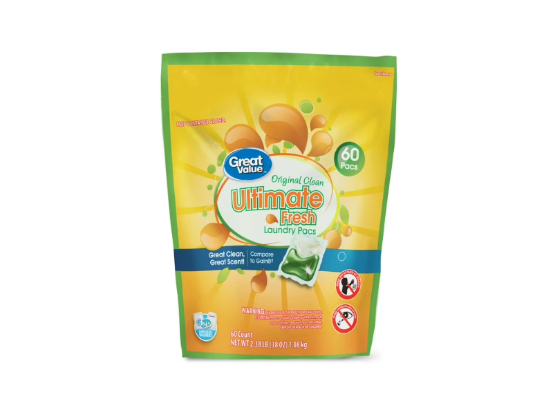 Great Value Ultimate Fresh Laundry Pacs, Original Clean, 60 Pacs, 38 oz/1.08 kg