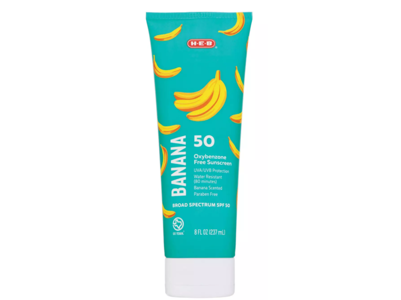 Use this H-E-B oxybenzone free banana scented sunscreen next time you hit the pool, beach or river. Blocking premature aging UVA rays along with sunburn causing UVB rays,