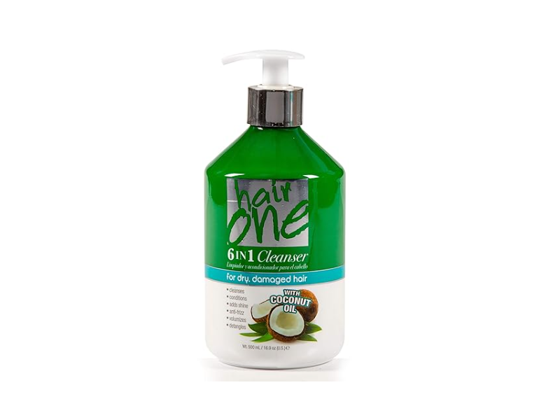 Get everything you want and need in one go with the 6 in 1 Cleanser Coconut from Hair One. All Hair One 6-IN-1 Cleansers will cleanse, condition, add shine, detangle, volumize and help prevent against frizz.