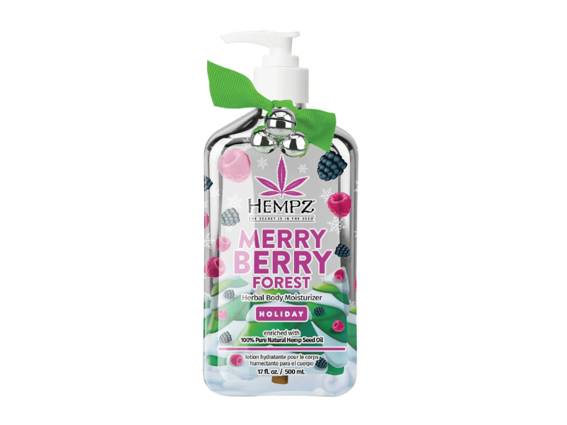 Merry Berry Forest Herbal Body Moisturizer. It hydrates skin with 100% pure hemp seed oil and leaves skin with a sweet winter berry scent.