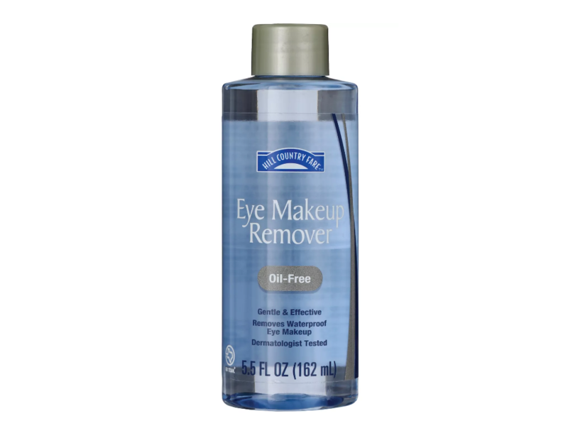Hill Country Fare Oil-Free Eye Makeup Remover is a two-phase oil free liquid that activates when shaken to gently remove even waterproof eye makeup.