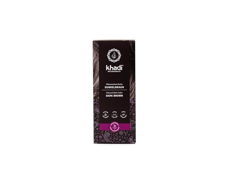 Introducing KHADI NATURAL Dark Brown Hair Colour Powder, crafted with 100% certified organic ingredients including Chamomile, Indigo leaves, Henna leaves, Cassia Leaves, Amla, Fenugreek seeds, and Brahmi Leaves. This unique formulation not only delivers long-lasting hair color but also nourishes, protects.