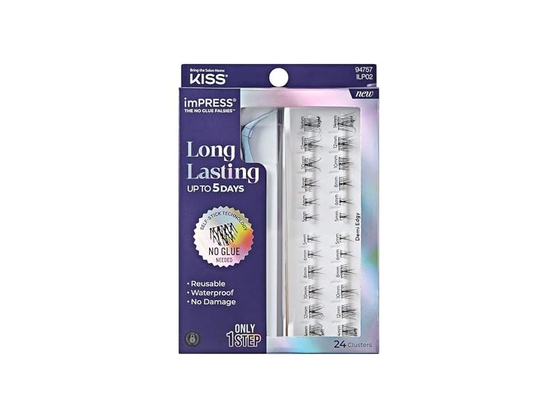 imPRESS Long Lasting NO GLUE Press On Lashes are pre-bonded lash clusters that are waterproof, reusable, and stay on for up to 5 days; Designed for the lash lover who’s looking for long-lasting use with easy application