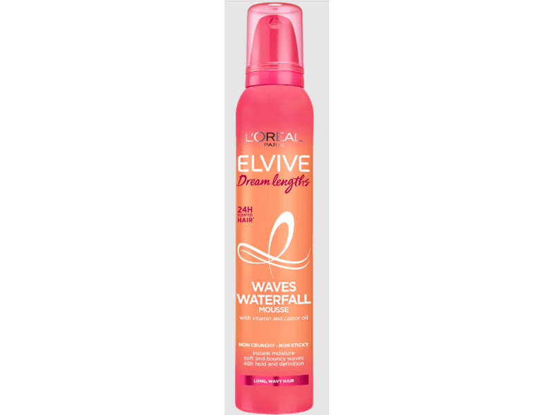 Dream lengths Waves Waterfall Mousse by L’Oreal Paris. Part of the in-between washes style extender range, to style hair and maximise care without water, it boosts hairs moisture for soft and bouncy waves that stay defined for up to 48-hours*.