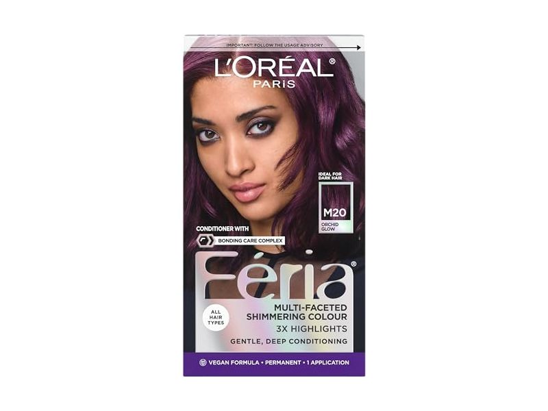 L'Oreal Paris Feria Shimmering Permanent Hair Color, M20 Orchid Glow, 1 Application