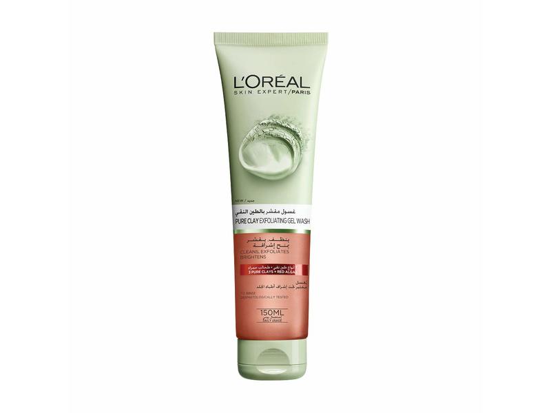 L'Oreal Paris Pure Clay Exfoliating Gel Wash, 3 Pure Clay + Red Algae, 150mL