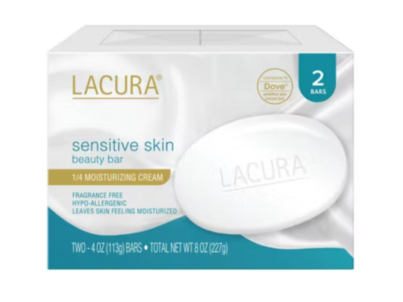 Lacura Sensitive Skin Beauty Bar is the ideal choice for gentle cleansing. Infused with 1/4 moisturizing cream, it leaves your skin feeling hydrated.