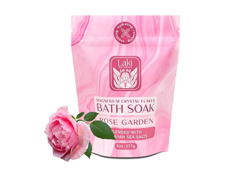 Laki Naturals Magnesium Crystal Flakes Bath Soak, Rose Garden, 8 fl oz/277 g