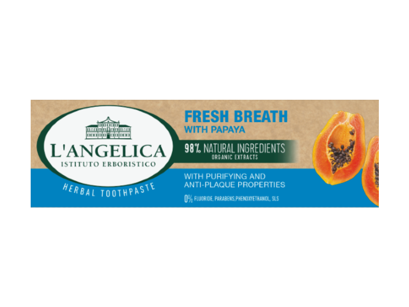 An innovative formula of herbal toothpasteAngelica FRESH BREATH is based on 98% natural organic ingredients and extracts, without fluoride, phenoxyethanol and SLS.