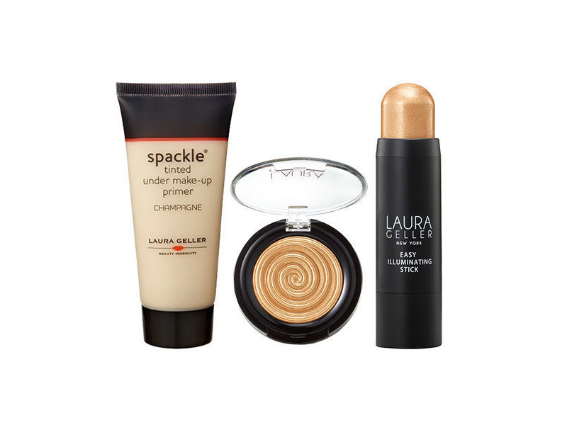 Creating a radiant complexion, Gilded Goddess 3 Piece Kit adds a buildable glow to all areas of the face. Containing a liquid primer, powder highlighter and illuminating stick, use as a base or to accentuate features of the face for a subtle shimmering finish.
