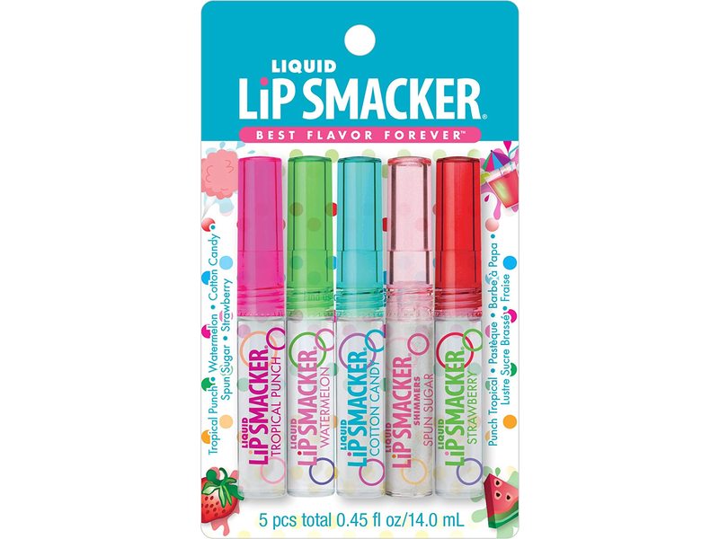 Lip Smacker Liquid Lip Gloss, Tropical Punch, Watermelon, Cotton Candy, Spun Sugar, Strawberry, 0.45 fl oz / 14 mL, 5 Count