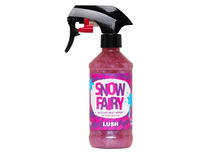 Lush’s Snow Fairy Glitter Mist Spray adds shimmer and a bubblegum sweet scent to hair and skin.