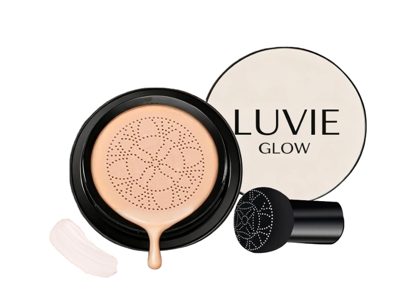The Luvie Glow Foundation Cushion is light and breathable-like skincare, not heavy makeup. It gives you smooth, glowing skin without the cakey look.
