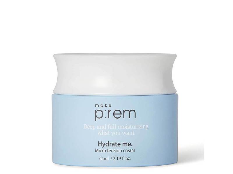 Make P:rem’s Hydrate Me. Micro Tension gel cream firms skin with micro trans moisture technology, allowing hydration to penetrate deeper into skin, making skin appear more elastic and plump. Botanical oils and Ceramides, deeply nourish skin, creating a healthy, glowing base primed for makeup application.