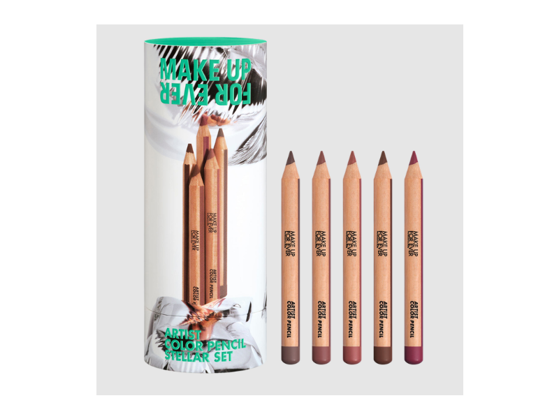 Draw endless makeup creations with the pencil kit that contains 5 mini Artist Color Pencil in shdes 600 anywhere caffeine, 606 wherever walnut, 608 limitless brown, 506 endless cacao , 808 boundless berry.