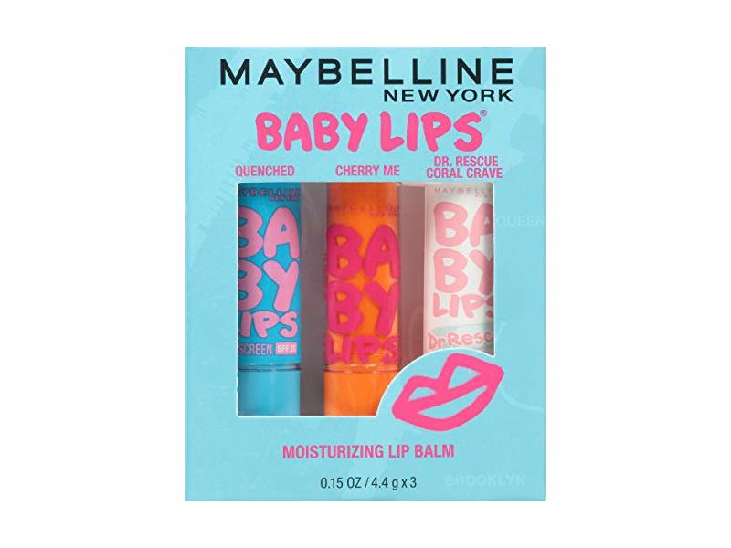 Maybelline New York Baby Lips Moisturizing Lip Balm, SPF 20, Quenched, Cherry Me, Dr. Rescue Coral Crave, 0.15 oz/4.4 g, 3 Pack
