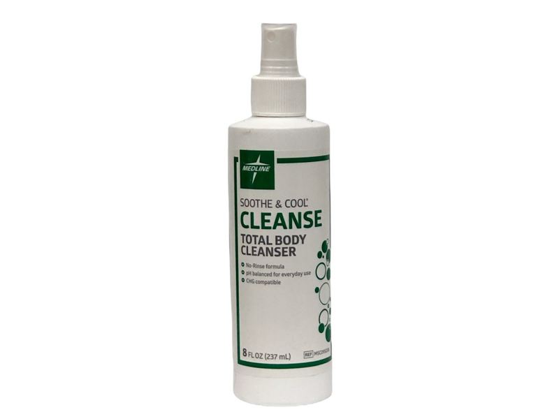 Medline Soothe and Cool No-Rinse Perineal Spray is the perfect clean-up for immobile patients. Its no-rinse formula makes patients clean-up easy. It can be simply sprayed and wiped clean. Soothe and Cool Total Body Cleanser is specially formulated for ultra sensitive skin and includes Aloe to soothe the skin. It is unscented and dye free which reduce the risk of skin irritations.