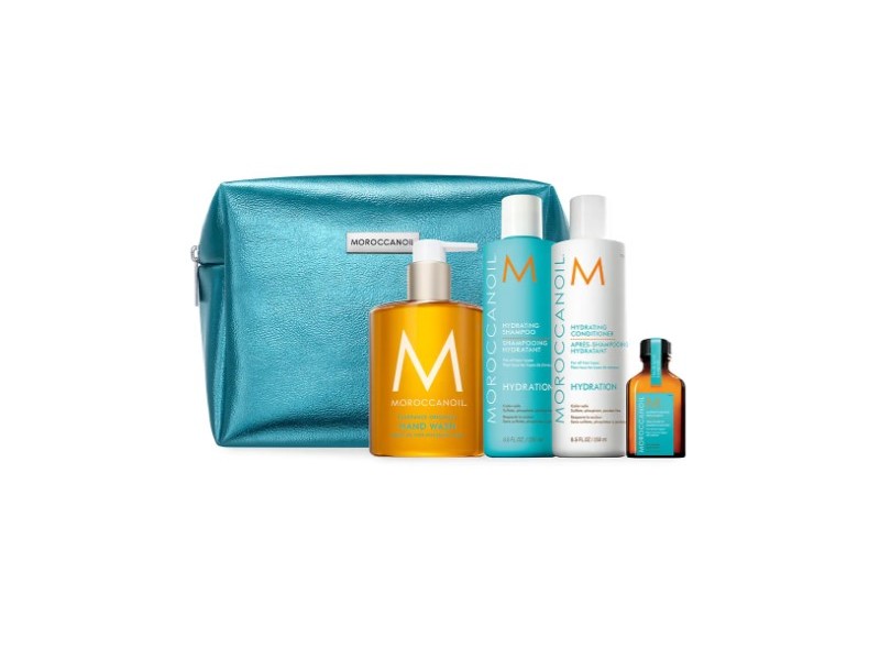 Limited-Edition. This gift set features Marocanoil's Hydrating Shampoo and Conditioner, a travel-size Moroccanoil Treatment, and a full-size Hand Wash