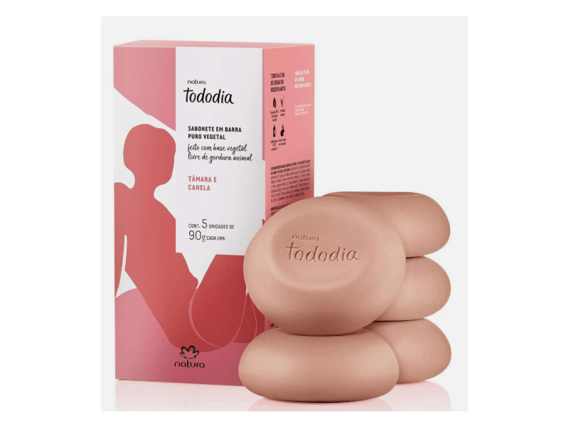 Natura Tododia Pure Vegetable Soap Bar, Date and Cinnamon, 90 g, 5 Count