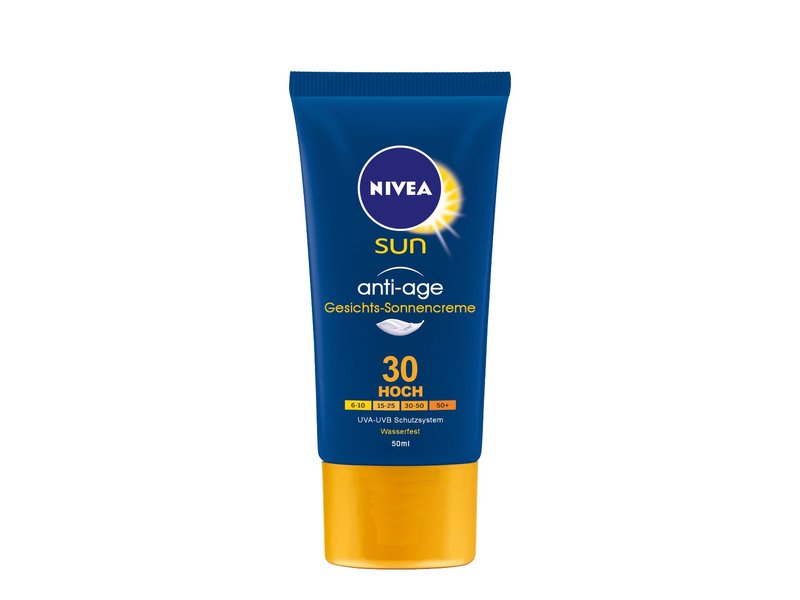 NIVEA sun Anti-Aging sun face cream SPF 30, 50 ml tube keeps mature skin soft and cared for, actively prevents fine lines and wrinkles sun for, intensively moisturizing & non-greasy, waterproof,