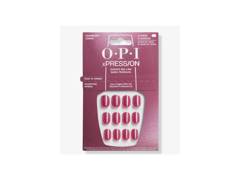 O.P.I xPress/on Instant Gel-Like Glazed Press-On Nails, Cranberry Cosmo, 30 Count