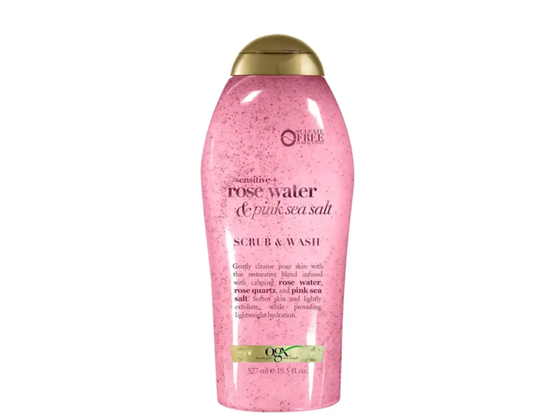 OGX Sensitive+ Body Scrub, Rose Water & Pink Sea Salt, 19.5 fl oz/577 mL