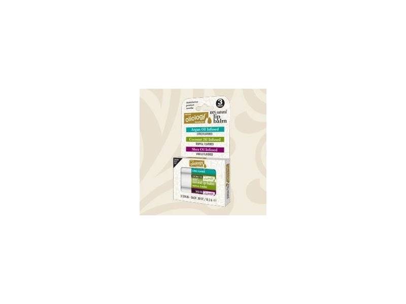 Oliology 100% Natural Lip Balm Shea/Coconut/Argan Oil Infused Assorted, 0.30 oz