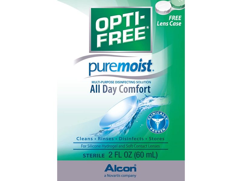 OPTI-FREE PureMoist is a multi-purpose contact lens solution manufactured by Alcon Inc. It features HydraGlyde® Moisture Matrix, a technology originally applied to the Air Optix plus HydraGlyde contact lens family. OPTI-FREE PureMoist also comes with two proprietary disinfectants to get rid of germs and other microorganisms, and to support preserving your lenses.