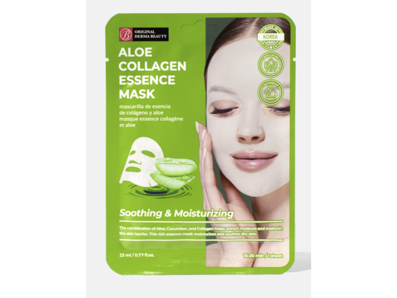 Original Derma Beauty Aloe Collagen Essence Mask, 0.77 fl oz/23 mL, 24 Count