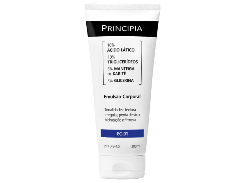 Body emulsion with 10% lactic acid, shea butter and glycerin to improve skin softness, tone, radiance, hydration and firmness.