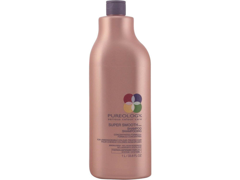 Tames frizzy hair Great for color treated hair Leaves hair shiny Pureology Super Smooth Shampoo is perfect for wild, unruly hair. It leaves hair shiny while protecting hair from damage due to heat styling