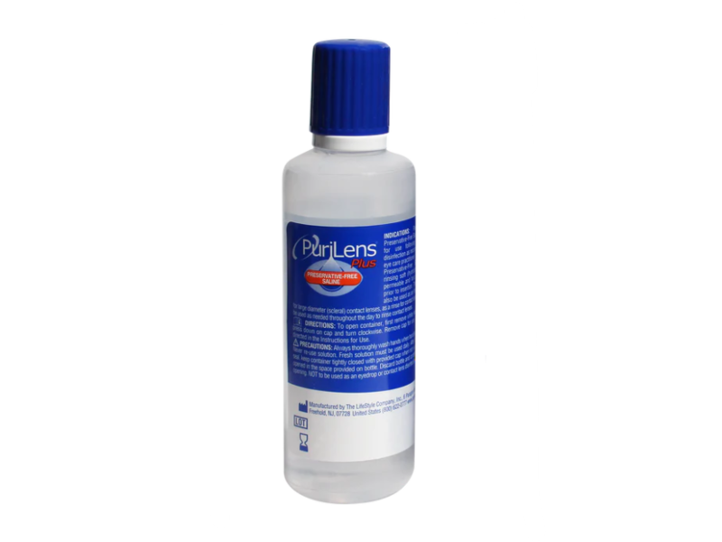 PuriLens Plus Preservative-Free Saline is a sterile, non-preserved, aqueous, isotonic solution of sodium chloride, buffered with boric acid and sodium borate, and used for rinsing and storing contact lenses.
