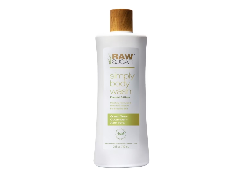 Raw Sugar Simply Body Wash, Green Tea + Cucumber, 25 fl oz/740 mL, Pack Of 6