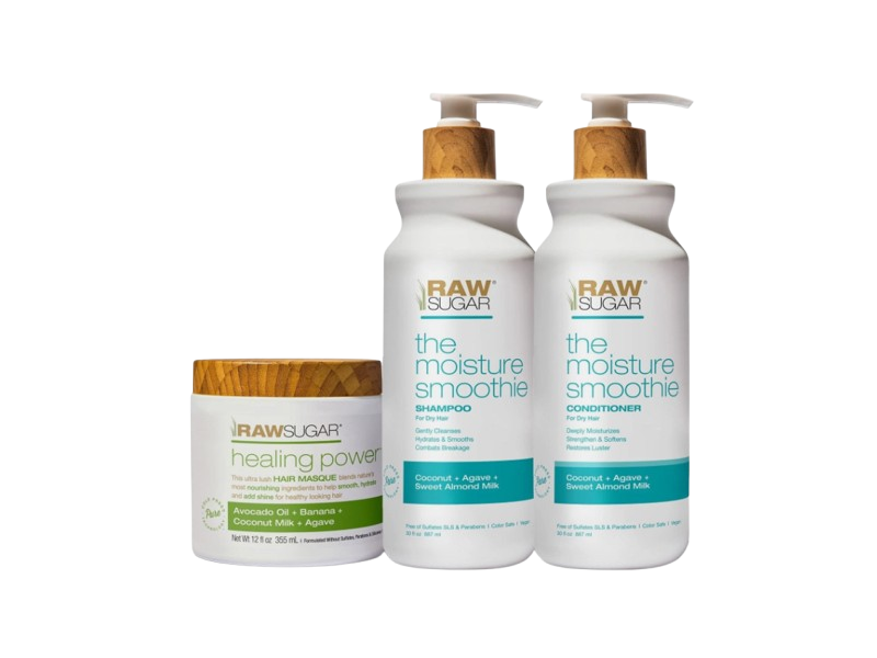 Raw Sugar The Moisture Smoothie Shampoo, Conditioner & Mask Kit, Coconut + Agave + Sweet Almond