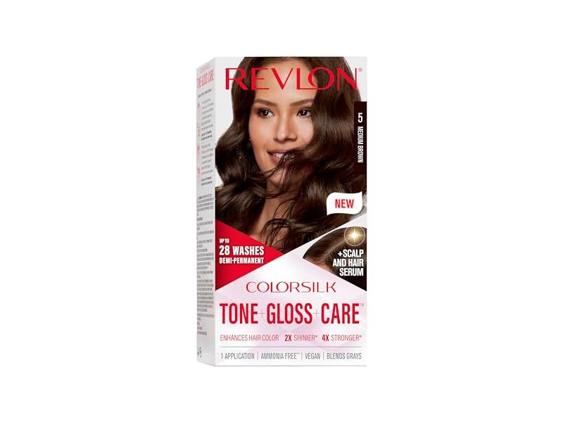 Revlon ColorSilk Tone + Gloss + Care Demi Permanent Hair Color, 5 Medium Brown, 1 Application
