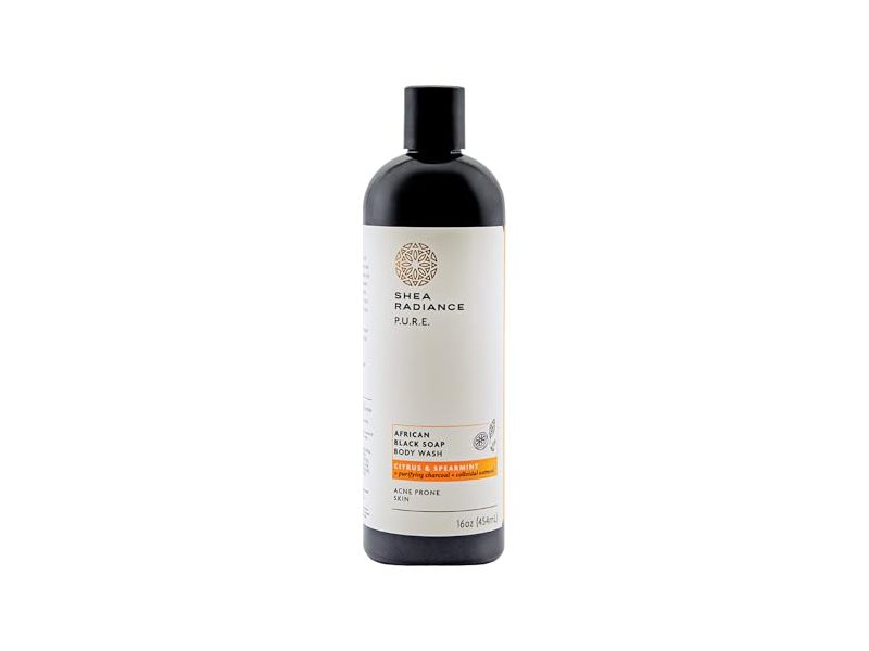 Shea Radiance Pure African Black Soap Body Wash, Citrus & Spearmint, 16 oz/454 mL