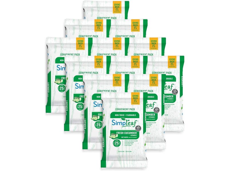 Simpleaf Flushable Wet Wipes, Fresh Cucumber + Vitamin E, 300 Count