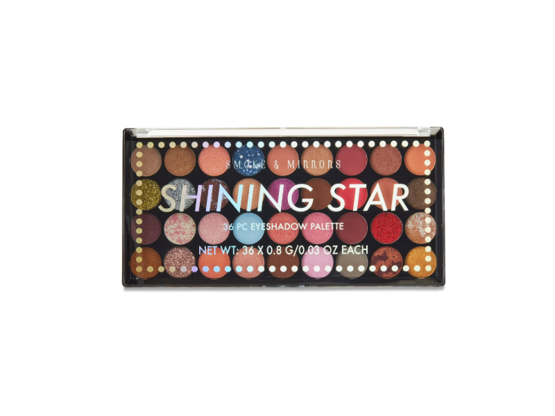 Create endless eye looks with the Smoke and Mirrors Shining Star 36-Piece Pressed Powder Palette. The rich, pigmented shadows offer true color payoff with a luxurious, silky-smooth formula that blends effortlessly. With 32 vibrant shades to choose from, the possibilities are endless.