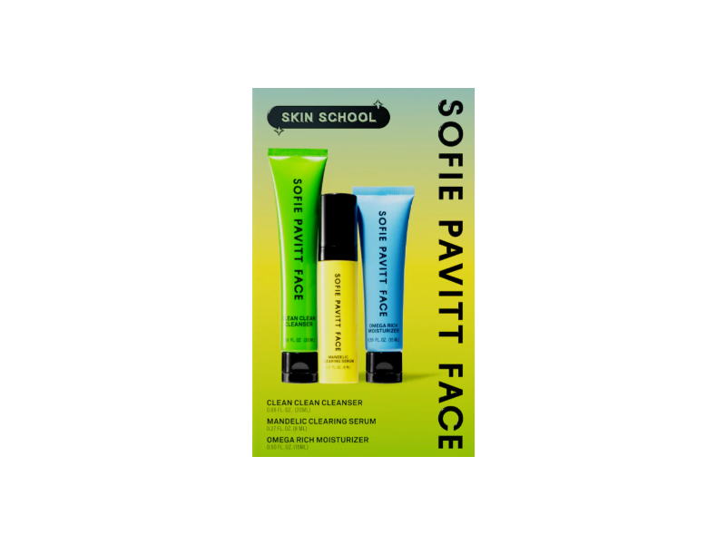 A mini set to school your skin on Sofie’s three-step system. Just cleanse, treat, and hydrate — that’s it. Includes mini versions of Clean Clean Cleanser, Mandelic Clearing Serum, and Omega Rich Moisturizer to help clear acne-prone skin and provide an effortless glow for all other skin types.