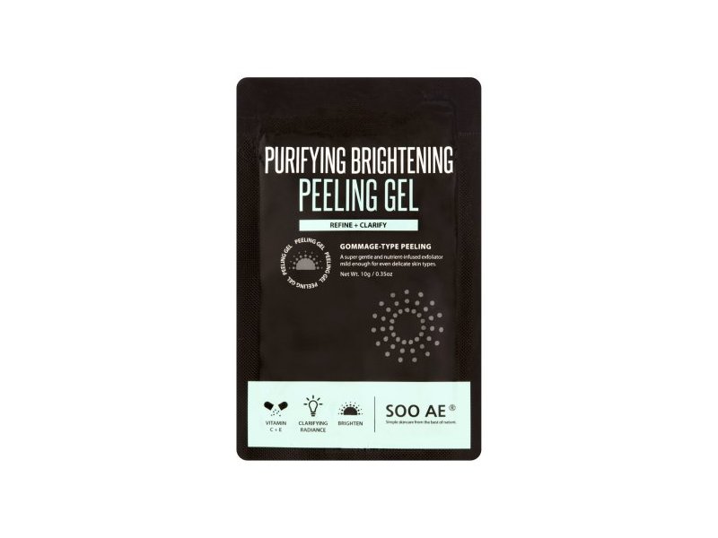 Soo Ae's Purifying Brightening Peeling Gel is formulated with eco-cert certified natural cellulose, known to be rich in moisture. This gentle and effective formula is for all skin types to deliver superb and extra gentle exfoliation benefits with moisture-rich natural cellulose which is infused with vitamins and fruit extracts to help gentle lift dead skin cells and unclog pores to restore skin clarity and radiance. In addition, it allows for improved absorption and efficacy for skincare applications that follow after its use.
