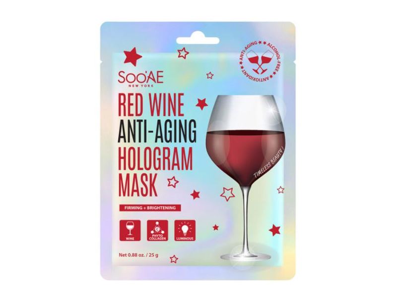 The hologram foil assists in retaining a signature anti-aging formula of wine extract and collagen, for firmer and brighter looking skin.