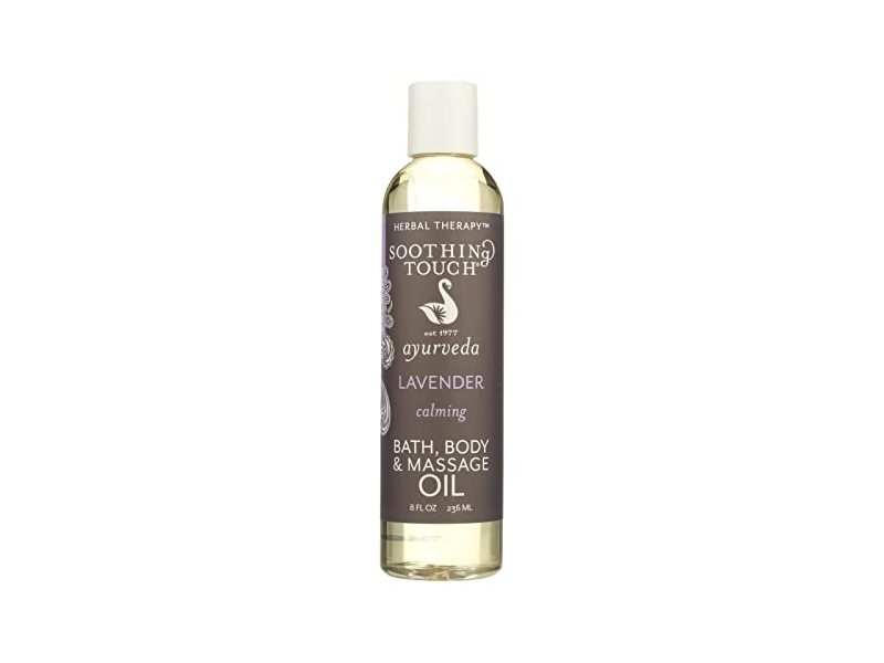 Soothing Touch lavender bath, body and massage oil is made from a blend of body oils, including high oleic expeller-pressed safflower oil, high oleic expeller-pressed sunflower seed oil, expeller-pressed sweet almond oil, grapeseed oil and lavender essential oil.