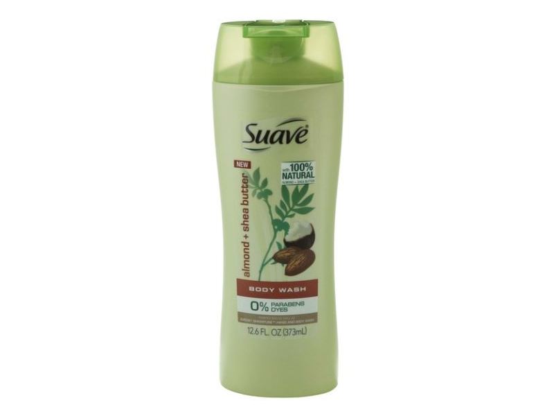 New Suave Almond and Shea Butter Body Wash is made with 100% Natural Almond and Shea Butter, which are known for their rich emollients. This product is made with 0% parabens and 0% dyes, and soothing, nature-inspired fragrances.  This body wash creates a rich creamy lather that rinses clean for a luxurious and pampering shower experience.