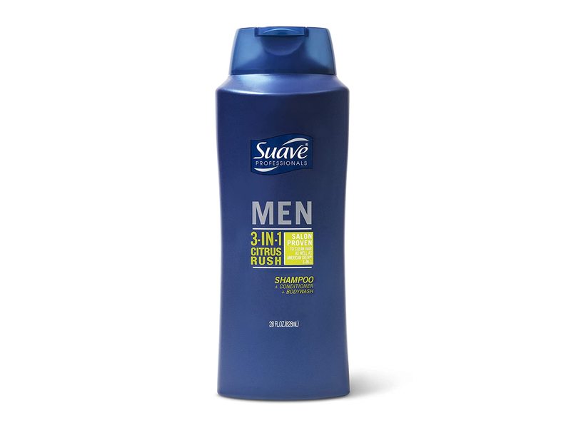 Suave Men Shampoo + Conditioner + Bodywash, 3-In-1 Citrus Rush, 28 fl oz/828 mL