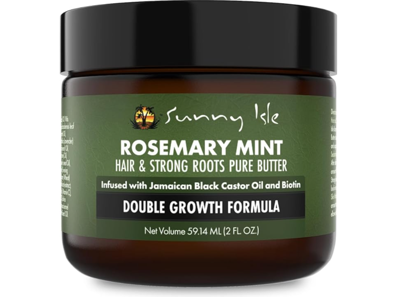 Sunny Isle Rosemary Mint Hair & Strong Roots Butter is a nutrient-rich, Biotin-infused and Jamaican Black Castor Oil infused hair and scalp treatment.