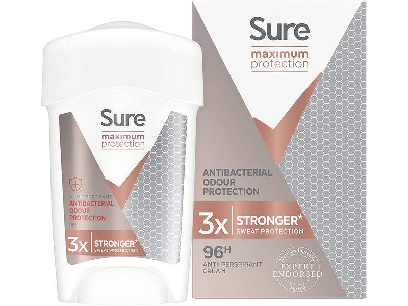 Sure Women Maximum Protection Antibacterial Odour Protection anti-perspirant deodorant cream stick 45 ml is Sure's most powerful protection against sweat and odour in an easy to apply, dermatologically tested cream stick format to keep you feeling fresh, dry and confident.