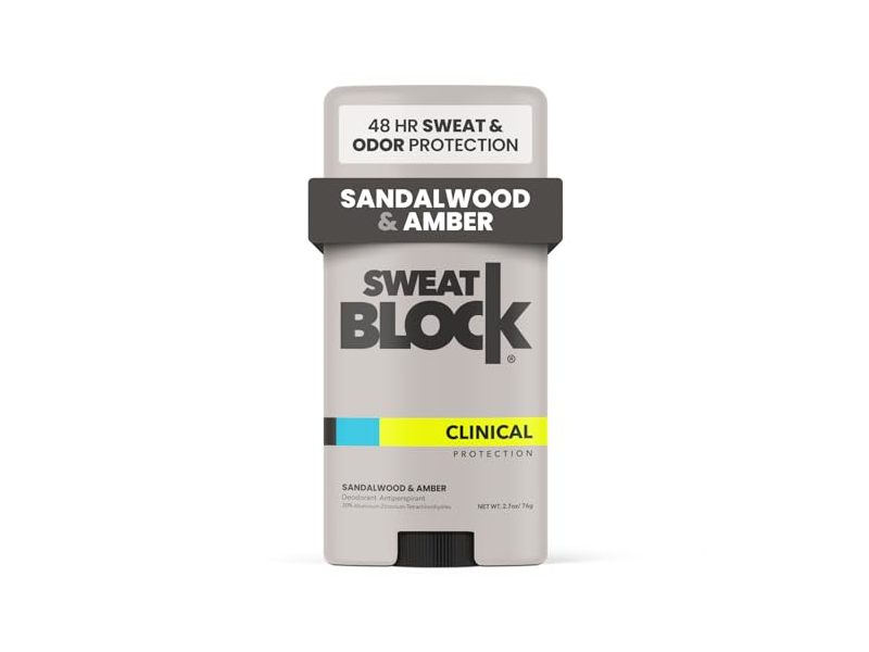 SweatBlock Clinical Protection Deodorant Antiperspirant, Sandalwood & Amber, 2.7 oz/76 g