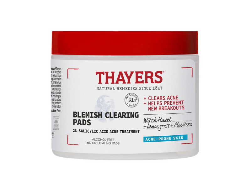 Thayers Blemish Clearing Pads, 2% Salicylic Acid, Witch Hazel + Lemongrass + Aloe Vera, 60 Count
