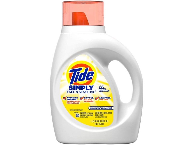 Tide Simply Free & Sensitive liquid laundry detergent that is gentle on skin, low price and a great clean are over. It works with both High Efficiency (HE) and standard washing machines.